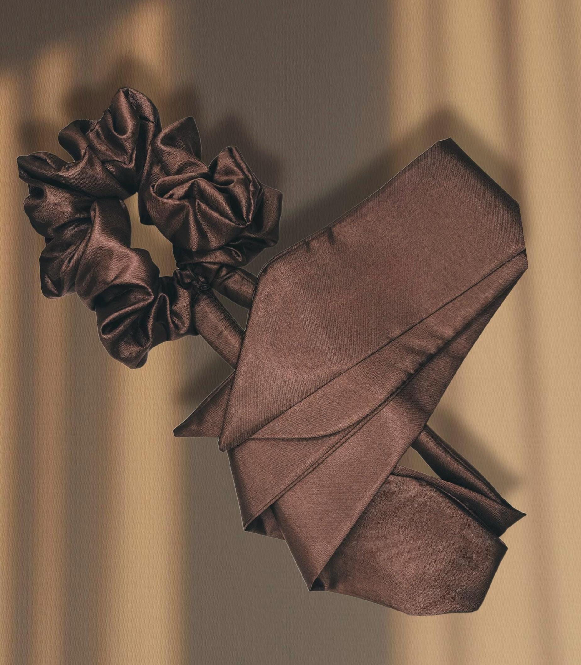 Brown Silky Scrunchie Hair Curler with Long Tails - Heatless Curls