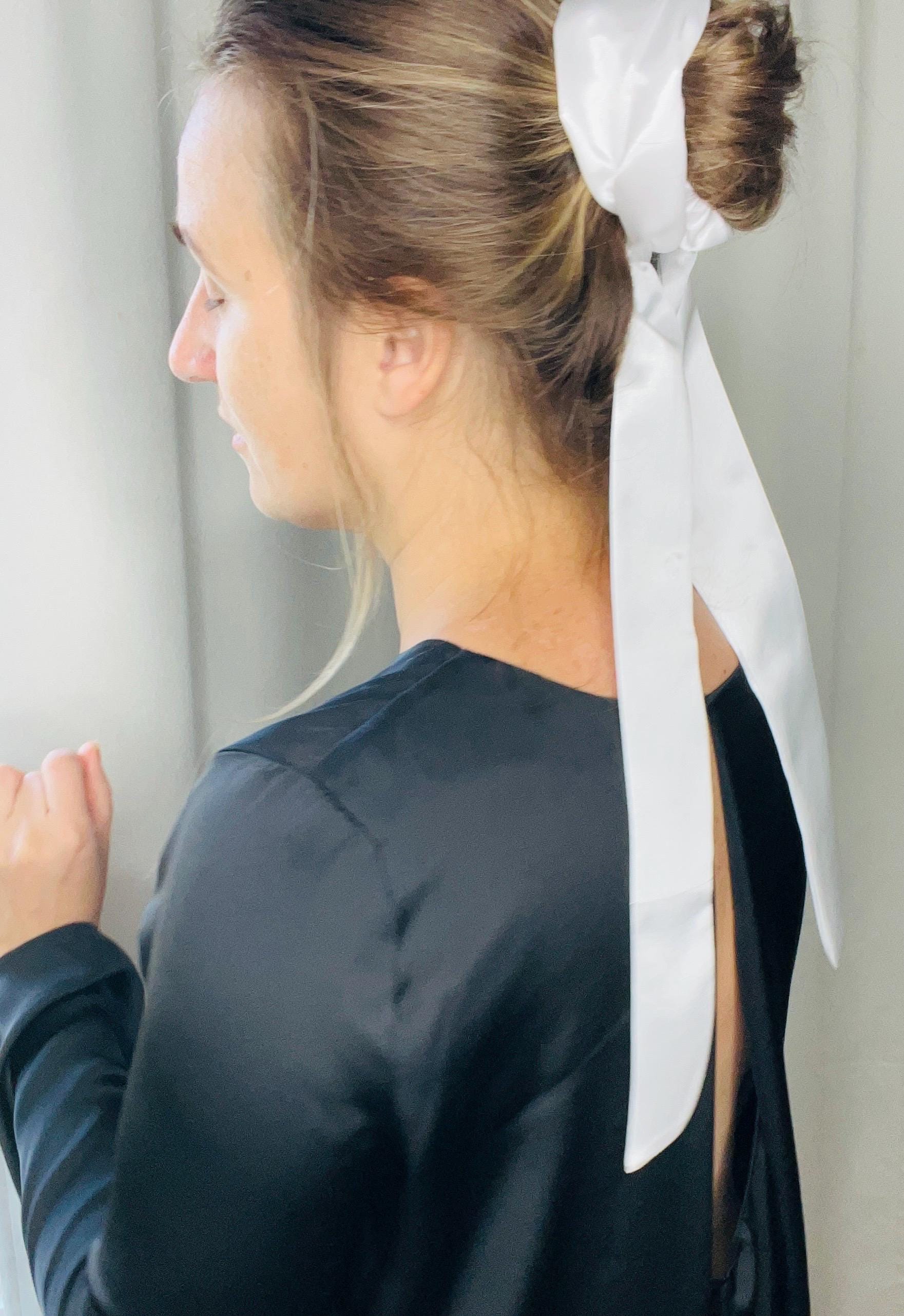 White Satin Hair Ribbon Elegant Accessory